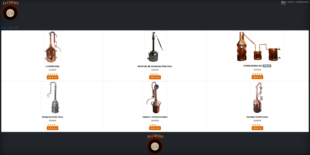Throughout this project, we learned that design is a distillation process too. Learning what ingredients are important in order to distill into the quality product we're able to make in the end. For us, it was the time constraint, we were tasked to go from researching to creating some front end coding development in the time span of 3 weeks for a group of 3 people. We focused on making an interface and guideline that hopefully users would look at our concept thus far and say "yes, I can learn from that." Unfortunately our distilling school is as developed as our store front because frankly, we aren't experienced in distilling alcohol. We had the basic premise or idea about it and continued on with it. This concept has a lot it can be improved on, such as developing a distilling calculator like Hill-Billy Stills does and creating things like bundle options for tiers of people based off of their knowledge of distilling. Other stuff would be to keep tracking your education progress such as push notifications or creating accounts and profiles if the users are interested in that personal matter. All of these options are meant to facilitate and make the user's life easier when they want to get into the distilling hobby, all for to bring the science of distilling to their homes.